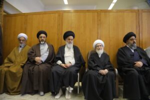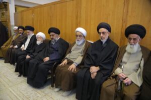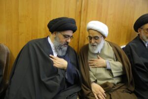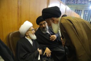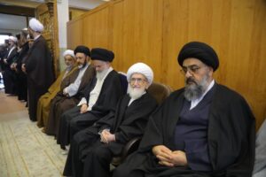 The presence of Ayatullah Sayyid Mujtaba Nur Mufidi at the ceremony on the seventh day of the passing of the divine scholar, Hujjat al-Islam wa al-Muslimin, Hajj Shaykh Reza Nuri Hamadani (may God have mercy on him), the esteemed brother of the esteemed Marja’; His Eminence Grand Ayatullah Nuri Hamadani (may God give him long life)