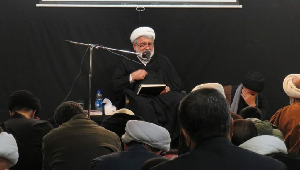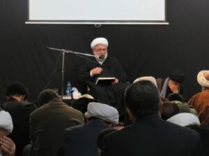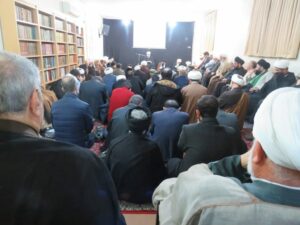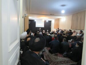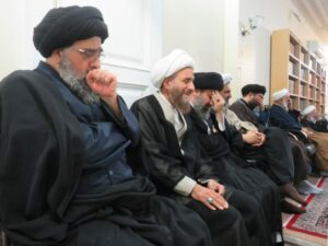 The mourning ceremony on the occasion of the martyrdom of Lady Fatimat al-Zahra’, peace be upon her, was held at the office of His Eminence Ayatullah Nur Mufidi and a number of virtuous seminarians.